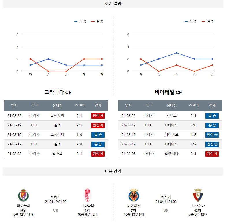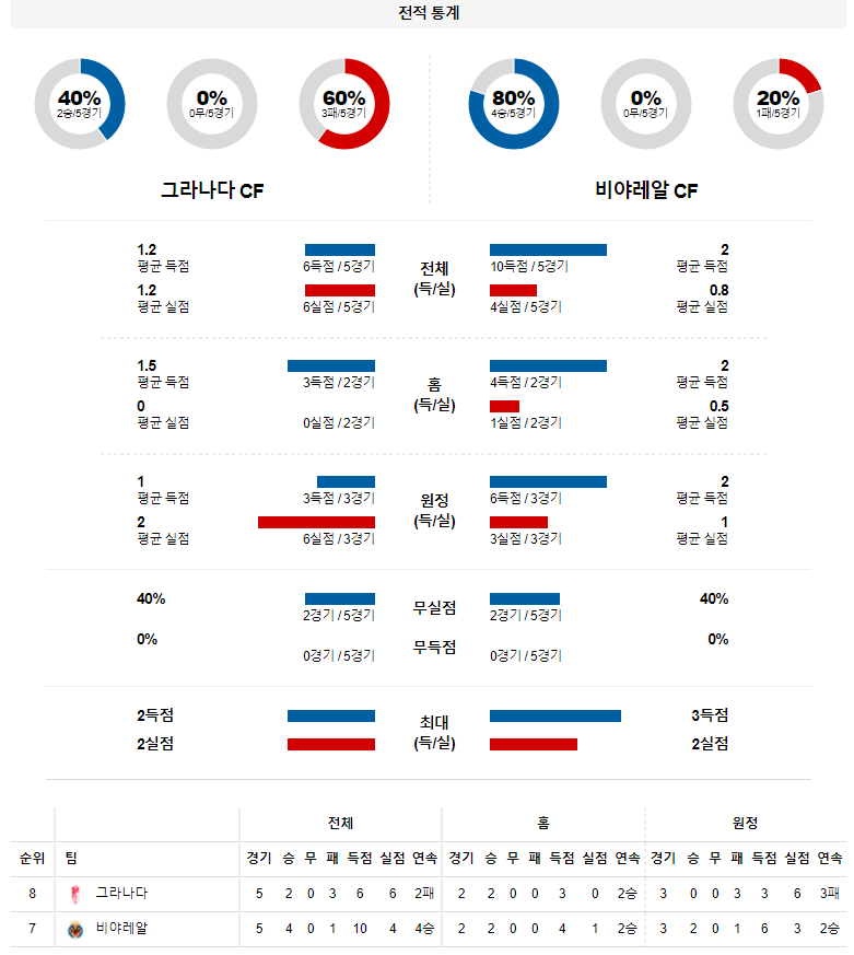 1. 최근 5경기 맞대결 : 5전 0승 3무 2패 (비야레알 우세)