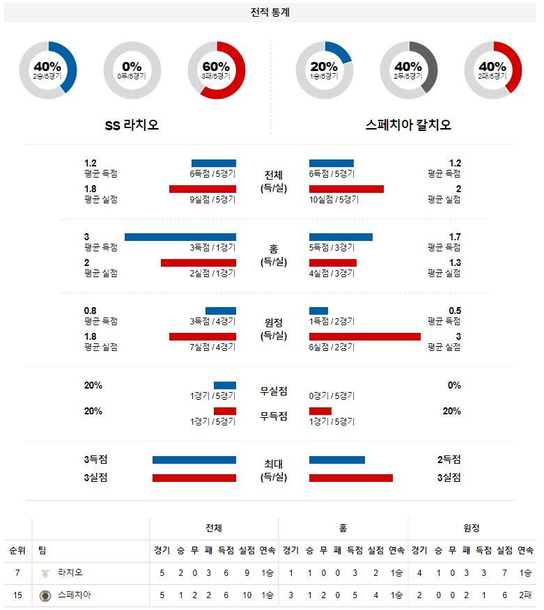 1. 최근 2경기 맞대결 : 2전 2승 5득점 1실점 (라치오 우세)