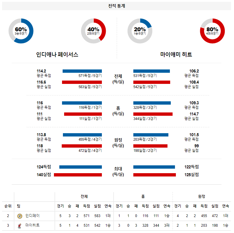 인디애나는 사보니스와 브로그단을 앞세워 꾸준한 득점력을 선보이고 있다. 반면 마이애미는 지난 시즌보다 공격력과 수비력이 동시에 하락한 상태다. 공격 상황에서 버틀러에 대한 의존도도 매우 높다. 인디애나가 승리할 전망이다.
