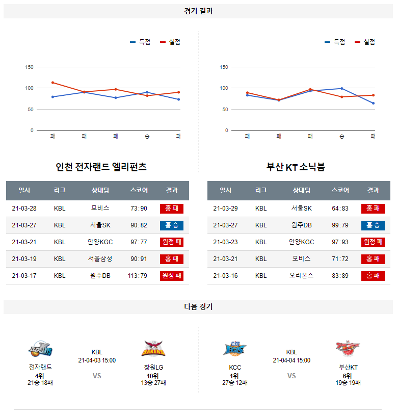 4월 1일 전자랜드 부산 KT 분석 KBL 농구