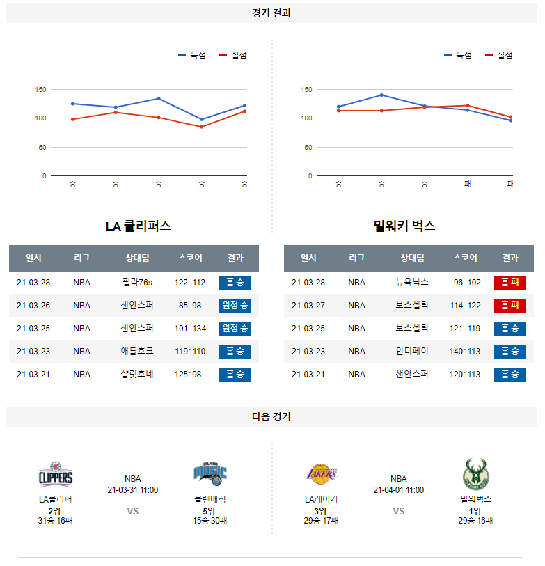 3월 30일 LA클리퍼스 밀워키 분석 NBA 농구