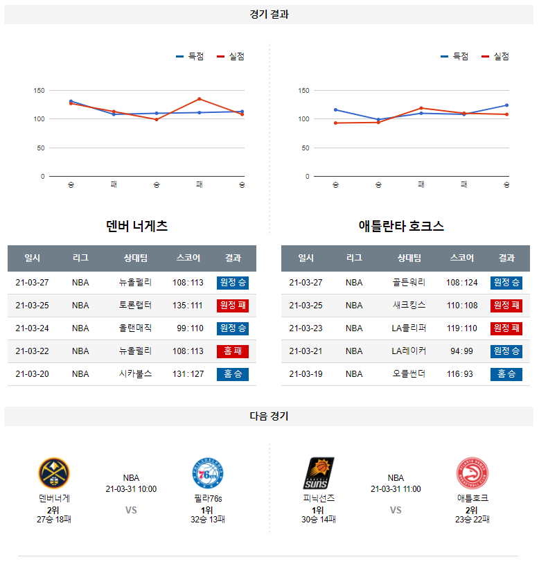 3월 29일 덴버 애틀랜타 분석 NBA 농구