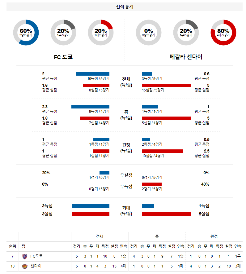 2. 도쿄 지난 시즌 홈 성적 : 17전 10승 7패 (무실점 비율 : 47%, 무득점 비율 : 18%)