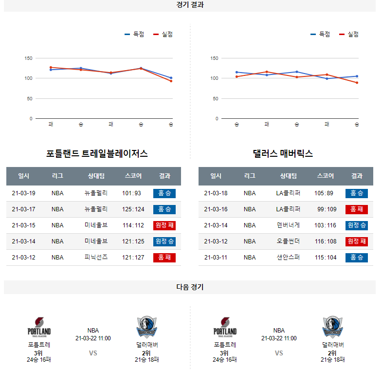 3월 20일 포틀랜드 댈러스 분석 NBA 농구