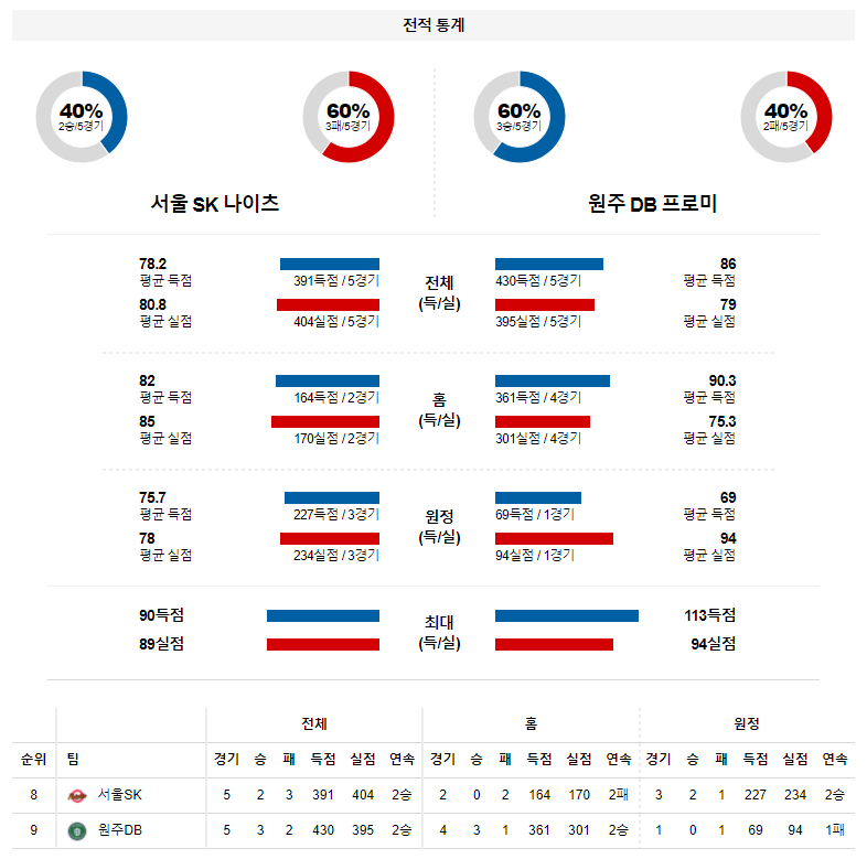 서울SK는 다음날 홈에서 삼성을 만나는 경기 일정을 위해서 힘을 분산해야 한다. 충분한 재충전의 시간을 보낸 이후 토요일 경기에 올인할수 있는 원주DB가 성실함 이라는 기동력을 4쿼터 종료 휘슬이 울릴때 까지 보여줄 것이다.