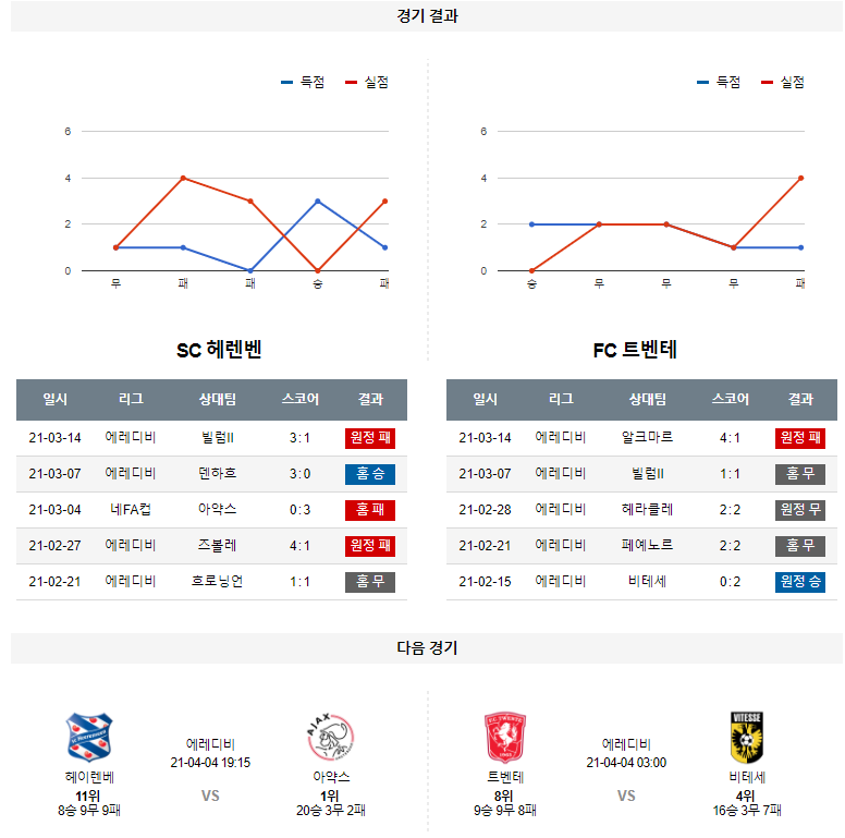 1. 최근 6경기 맞대결 : 6전 3승 3무 9득점 3실점 (헤이렌베인 우세)