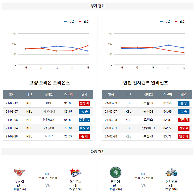 3월 14일 오리온스 전자랜드 분석 KBL 농구