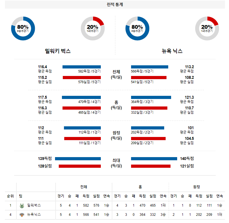 상대 실책 유발에 이은 역습 득점, 강력한 림 직접 공략, 킥아웃 패스에 이은 3점 라인 공세를 통해서 승리를 추가하고 있는 밀워키에게 홈경기의 유리함이 더해지는 경기다.객관적인 전력에서 우위에 있는 밀워키 승리 가능성을 추천 한다.