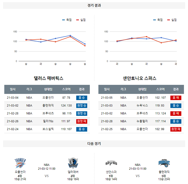 3월 11일 댈러스 샌안토니오 분석 NBA 농구