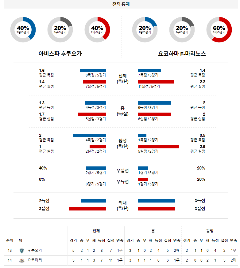 2. 후쿠오카 지난 시즌 홈 성적 : 21전 12승 4무 5패 (무실점 비율 : 48%, 무득점 비율 : 14%)