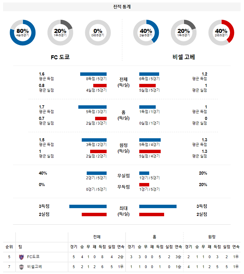 1. 최근 6경기 맞대결 : 6전 3승 2무 1패 7득점 4실점 (도쿄 우세)
