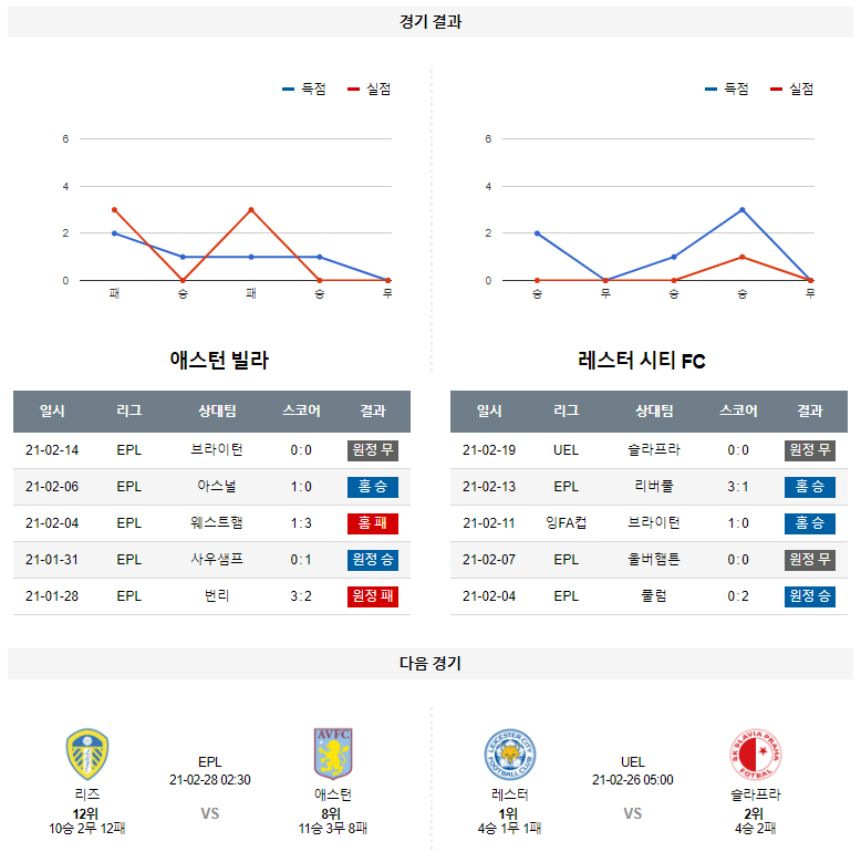 2월 21일 애스턴빌라 레스터시티 픽 분석 프리미어리그 축구