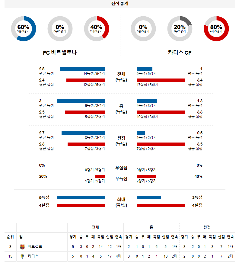 1. 최근 3경기 맞대결 : 3전 2승 1패 5득점 3실점 (바르셀로나 우세)