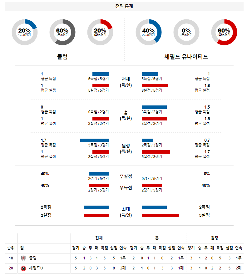 ◎ 셰필드 (리그 20위 / 패승패승패)