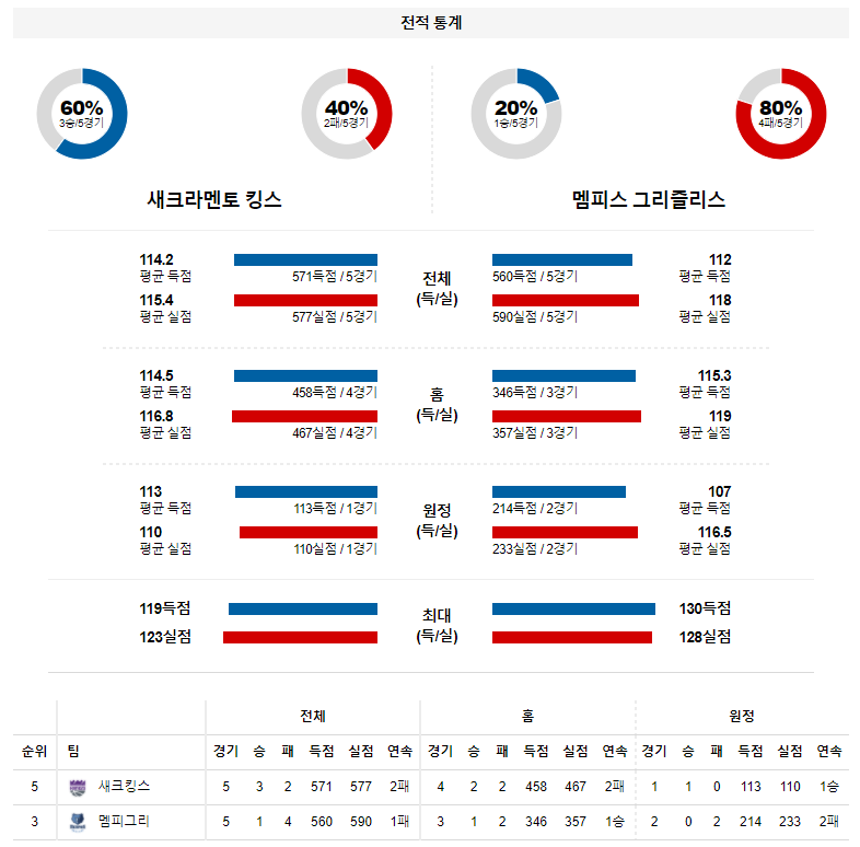 새크라멘토는 디애런 팍스가 정상 컨디션이 아니며 다음날 브루믈린과 연속 되는 홈경기 일정을 위해서 힘을 분산해야 한다. 반면, 멤피스는 '스피드 스타' 디 애런팍스가 좋은 컨디션을 유지하고 있는 상황. 박빙의 전력 구도에서 멤피스에게 힘이 되어주는 비교 대상 이다. 멤피스 승리 가능성을 추천 한다.