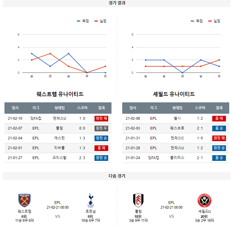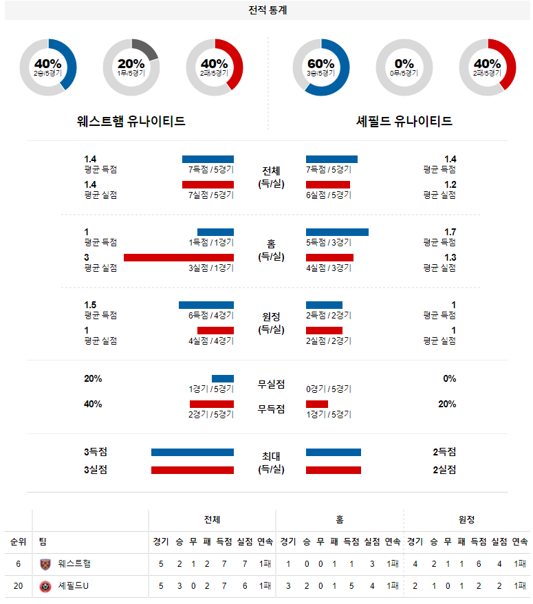 1. 최근 6경기 맞대결 : 6전 3승 1무 2패 6득점 4실점 (셰필드 우세)