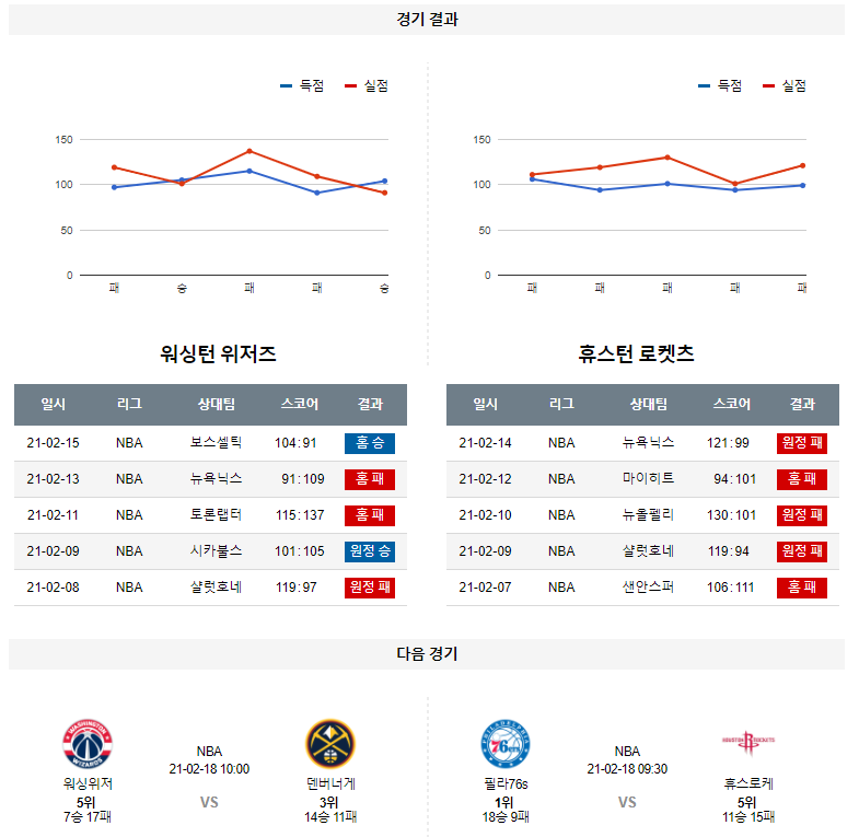 2월 16일 워싱턴 휴스턴 픽 분석 NBA 농구