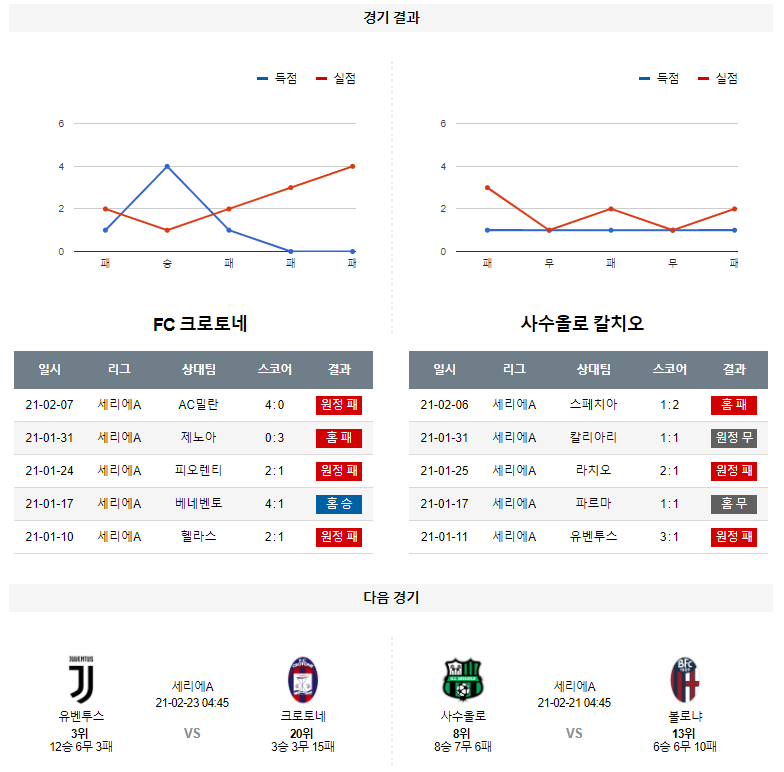 2월 15일 크로토네 사수올로 픽 분석 세리에A 축구