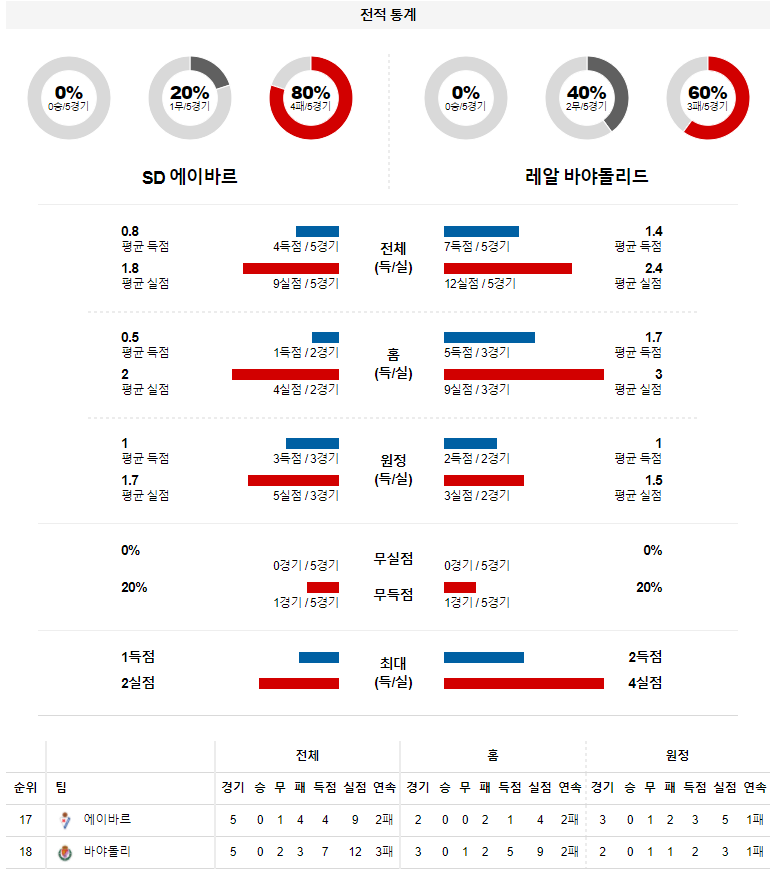 2. 에이바르 올 시즌 홈 성적 : 11전 1승 4무 6패 (무실점 비율 : 45%, 무득점 비율 : 64%)