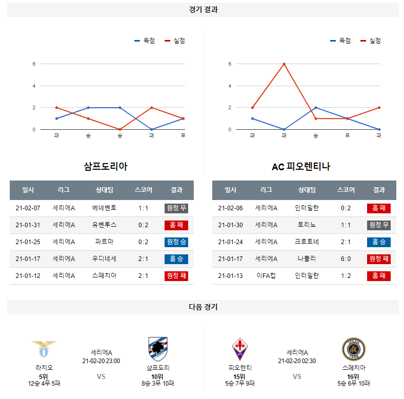 2월 14일 삼프도리아 피오렌티나 픽 분석 세리에A 축구