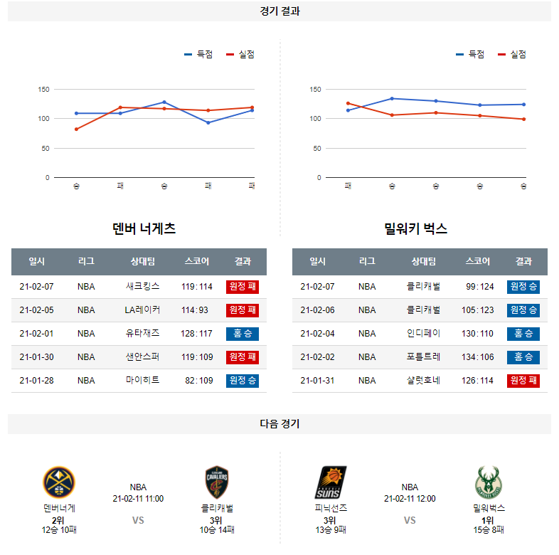 2월 9일 덴버 밀워키 분석 NBA 농구