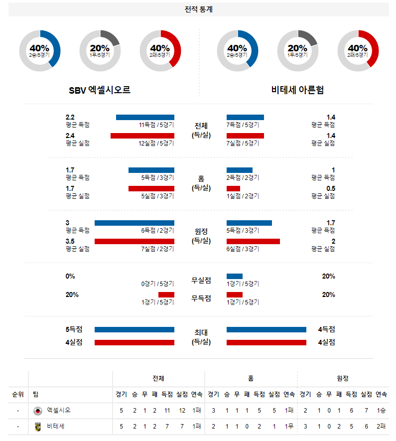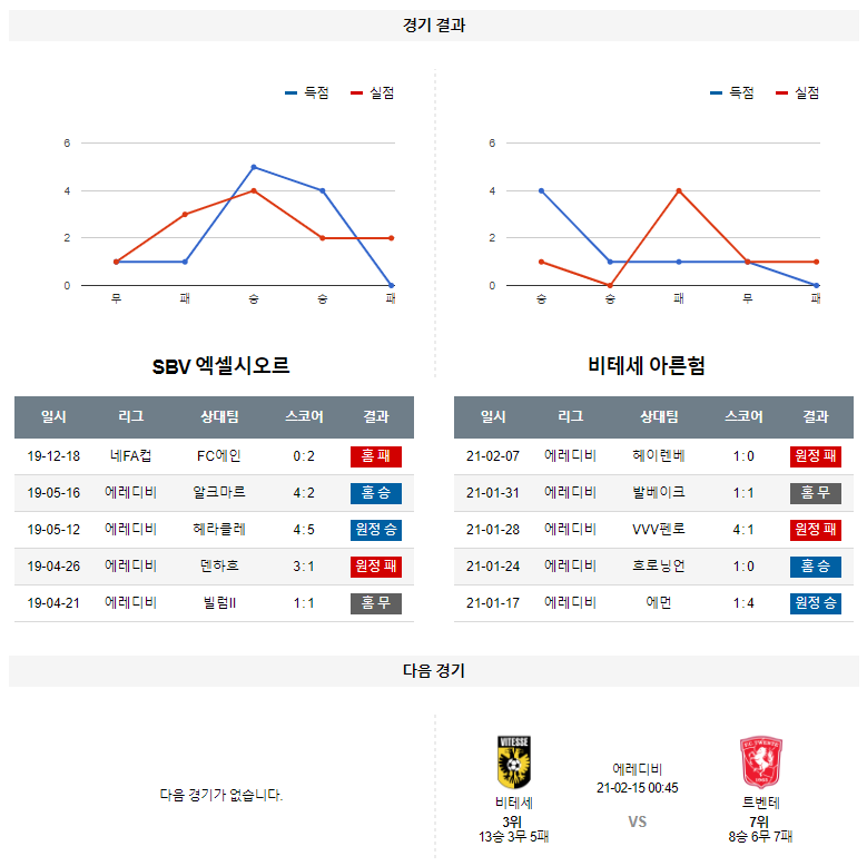1. 최근 6경기 맞대결 : 6전 3승 1무 2패 9득점 9실점 (엑셀시오르 우세)