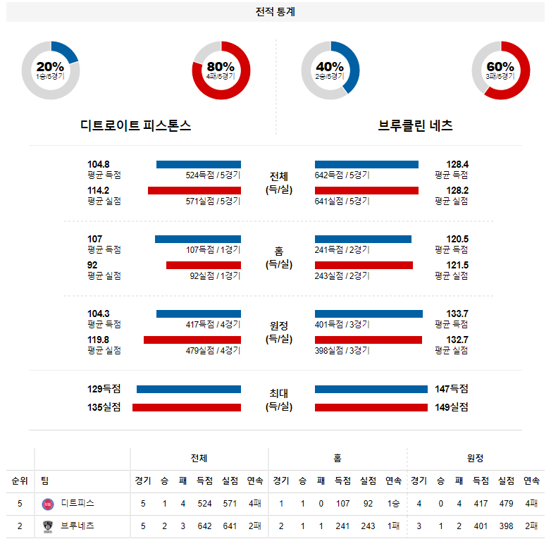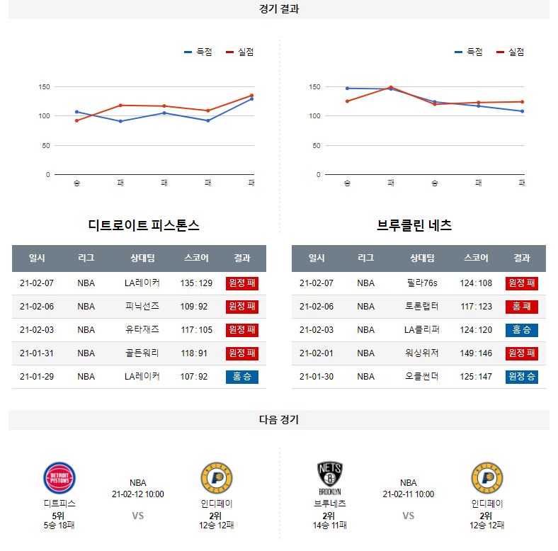 2월 10일 디트로이트 브루클린 분석 NBA 농구