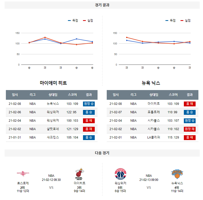 2월 10일 마이애미 뉴욕닉스 분석 NBA 농구
