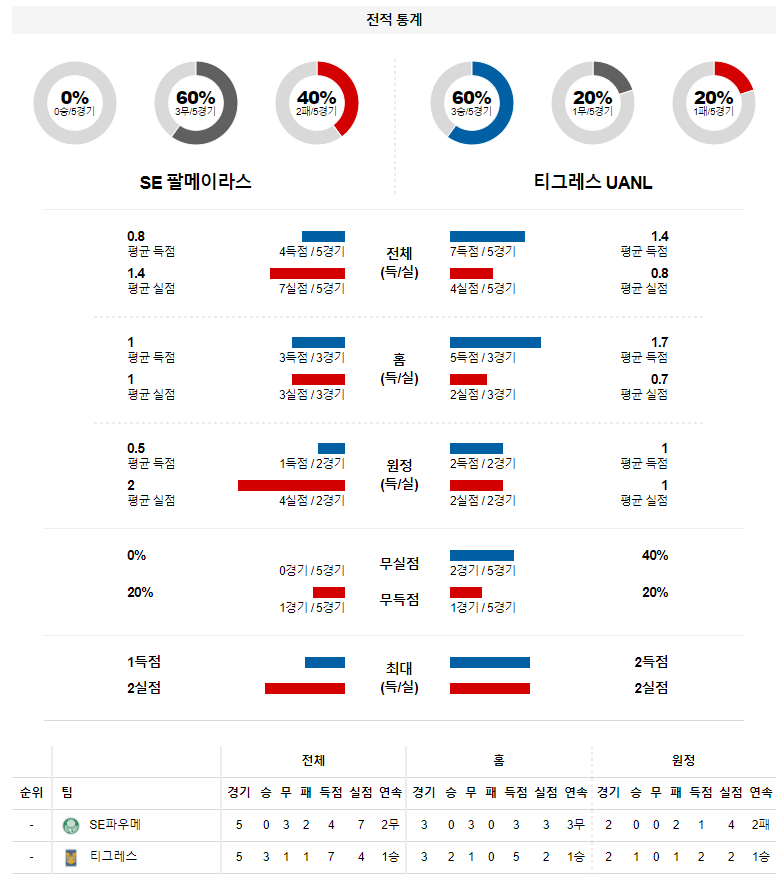 2. 팔메이라스 올 시즌 홈 성적 : 17전 8승 7무 2패 (무실점 비율 : 35%, 무득점 비율 : 6%)