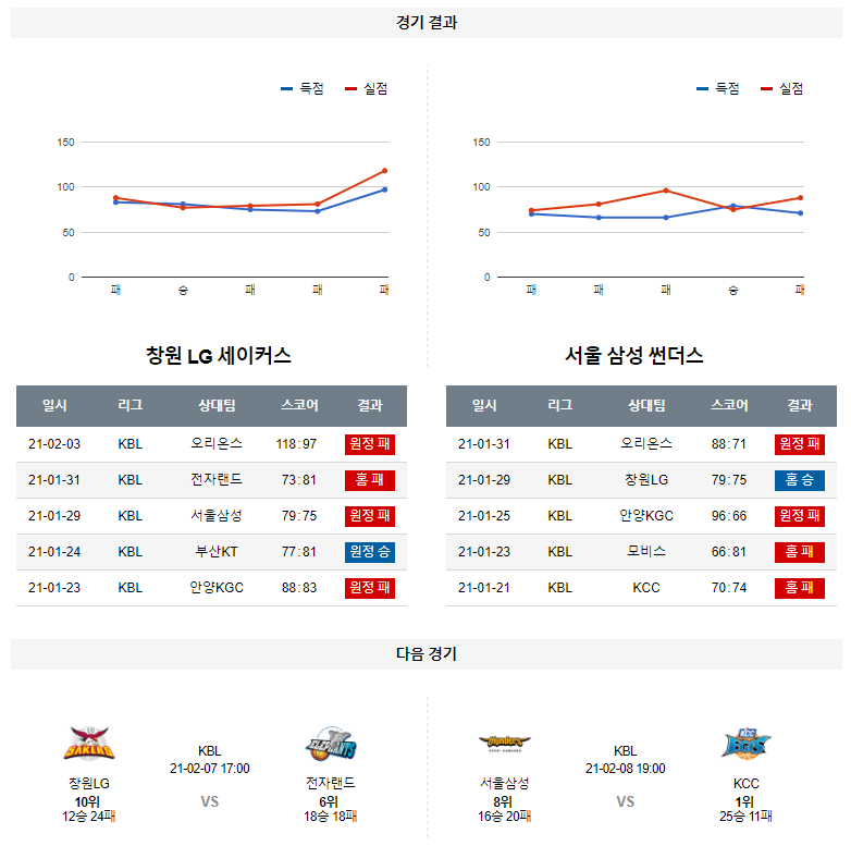 2월 6일 창원LG 서울삼성 분석 KBL 농구