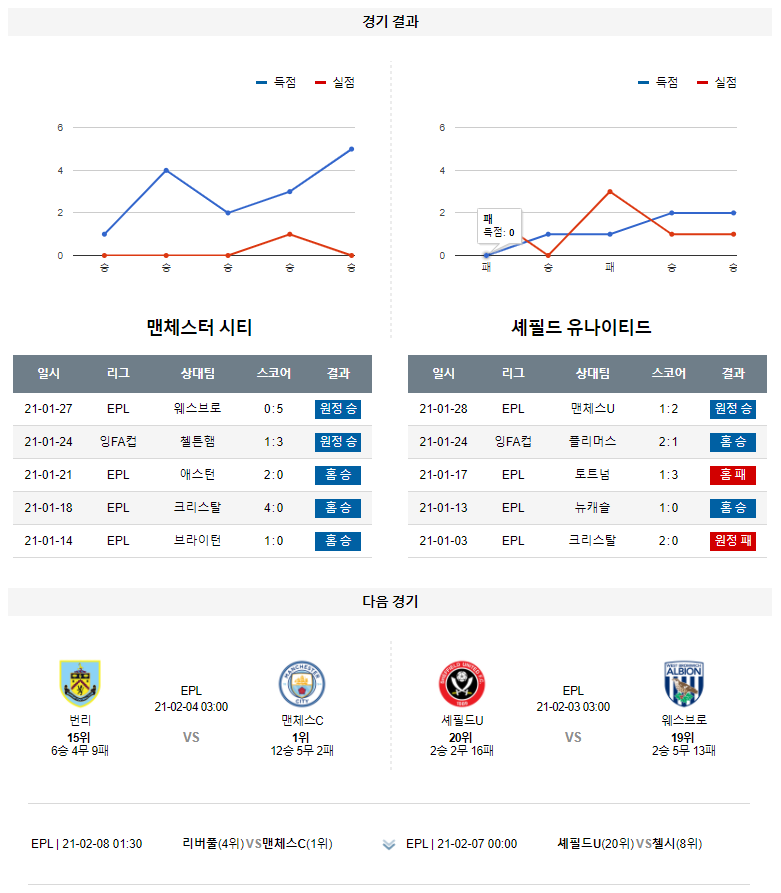 1. 최근 6경기 맞대결 : 6전 4승 1무 1패 6득점 2실점 (맨시티 우세)