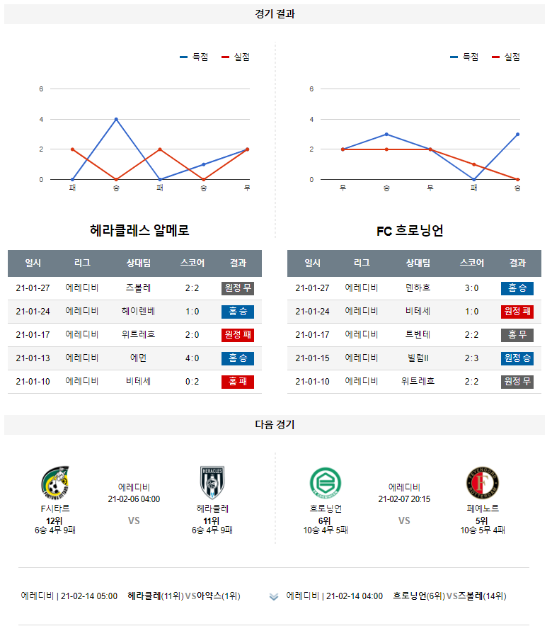 1월 31일 헤라클레스 흐로닝언 분석 에레디비시 축구