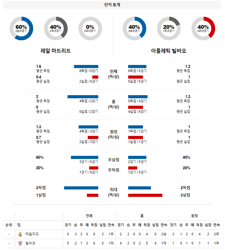 2. 마드리드 올 시즌 홈 성적 : 8전 6승 2패 (무실점 비율 : 50%, 무득점 비율 : 13%)
