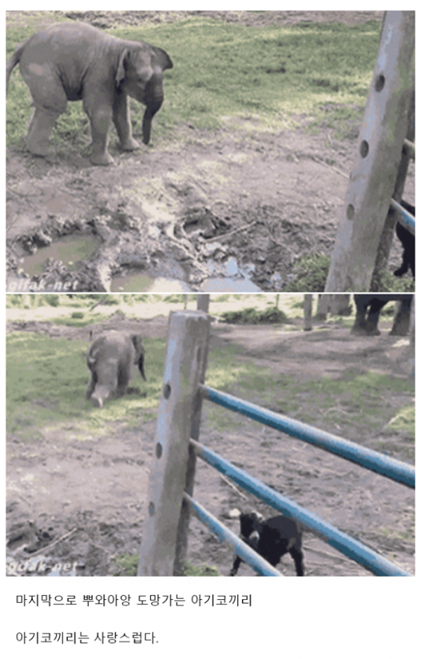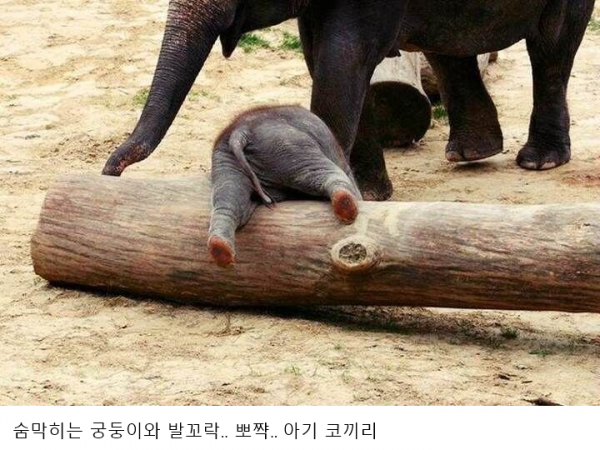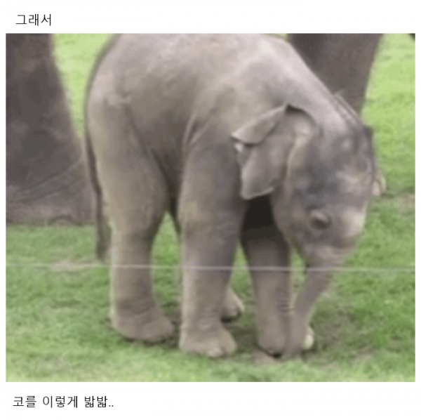 자기 코를 자기 코라고 인식 못하고 꾸욱꾸욱 밟는 아기코끼리