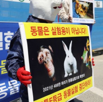 한국동물보호연합 회원들이 3일 서울 광화문 사거리에서 …