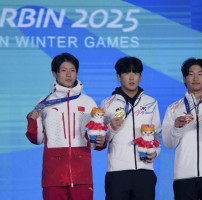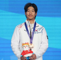 이채운(가운데)과 강동훈(오른쪽)이 8일 2025 동계아시안게임 남자 슬로프스타일 시상식에서 각각 금메달과 동메달을 목에 걸고 포즈를 취하고 있다. 사진=AP/뉴시스 ‘고교생 보더’가 두 번째 동메달을 수확했다. 강동훈(고림고)이 10일 중국 야부리 스키리조트에서 열린 2025 하얼빈 동계 아시안게임(AG) 스노보드 남자…