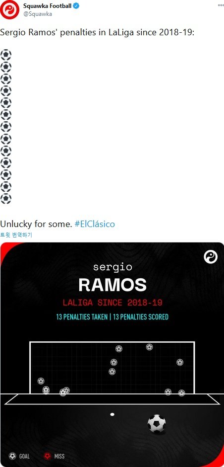 결국 후반 14분경, 크로스의 세트피스에 이은 라모스의 경합 과정에서 페널티 킥이 발생했다. 크로스가 간접 프리킥을 올리는 상황에서 바르사 수비수 클레망 랑글레가 라모스를 전담 마크하다가 유니폼을 잡아당기는 파울을 범한 사실이 비디오 판독(VAR) 결과 드러난 것. 이에 후안 마르티네스 무네라 주심은 페널티 킥을 선언했고, 이를 라모스가 차분하게 성공시키면서 레알이 2-1로 리드를 잡는 데 성공했다. 2018/19 시즌 이래로 라리가에서 얻어낸 13번의 페널티 킥을 모두 골로 연결하면서 100% 성공률을 자랑한 라모스이다.