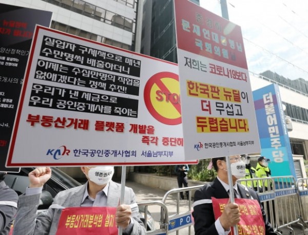 중개사들 "생존권 위협" 청원에 거리 집회나서