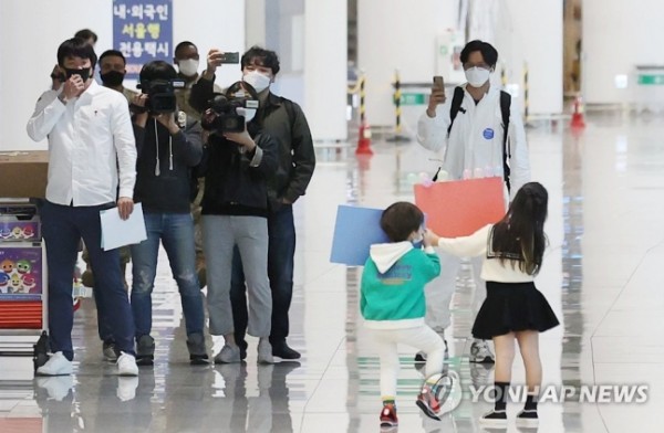 이날 김광현의 자녀인 민주, 민재 남매는 손수 환영 플래카드를 만들어 공항으로 마중 나왔다.