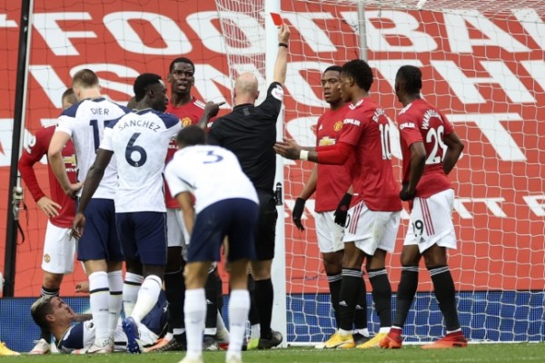 변수가 발생했다. 전반 28분 마르시알이 퇴장당했다. 라멜라와의 경합 중이었다. 마르시알이 라멜라의 얼굴을 때렸다. 폭력 행위로 레드카드를 받았다.